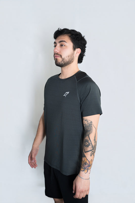 PLAYERA DRY-FIT GRIS RAYAS